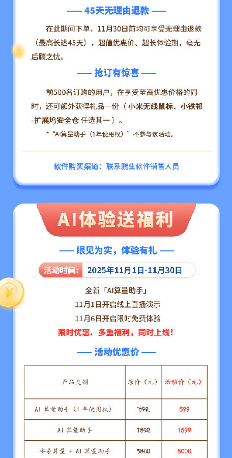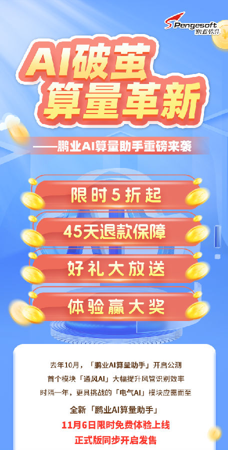 鹏业AI算量助手重磅来袭——限时5折起,45天退款保障